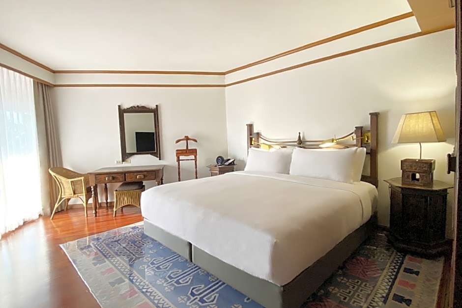 Deluxe Sea View Plus Room is 409 square feet and includes either a king-size bed 150-183 width or 2 single beds 80-130 width plus balcony, extra beds on demand, desk, cable tv, hairdryer, ironing set, safe, bathrobes, and slippers and is Wheelchair-accessible.
